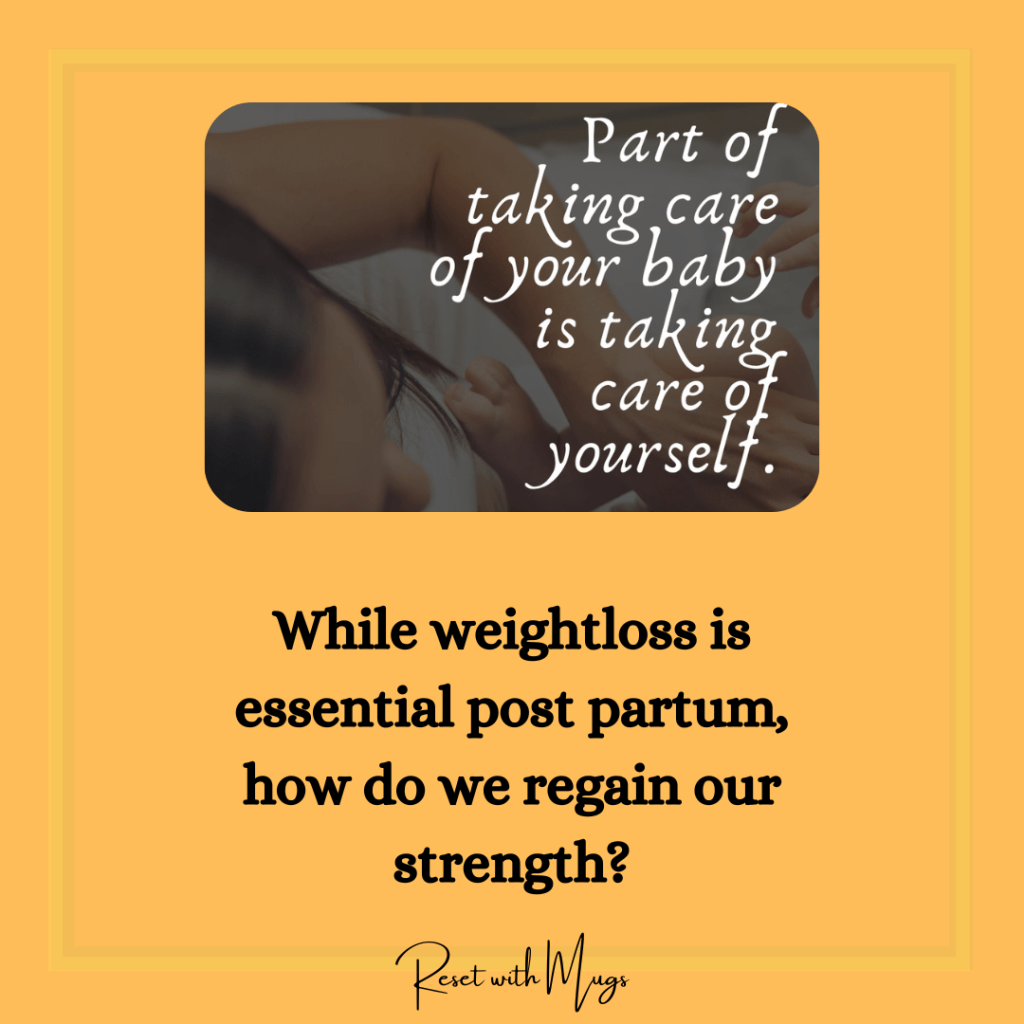 Gaining strength should be our primary focus post partum. Weightloss will happen subsequently in the process, but working on strength will ensure you are happily present for your child without any health complications in the future.