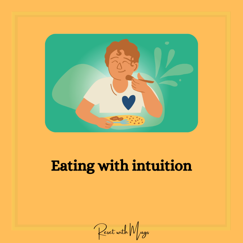 Eating intuitively means how to eat based on your body’s hunger signals. When we practice this for every meal every day, we can rebuild a healthy relationship with our food, mind and body. We have to relearn to trust our body to heal our relationship with food.