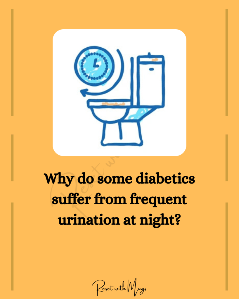 Once a person is managing their sugar levels with medication, this problem should not arise. However, some patients still suffer from frequent urination but only at night. Due to frequent waking (as many as 10 times for some), it leads to disturbed sleep and also depleted energy levels in the morning because what they ate at night has not been absorbed by the body. This usually happens because of one or all of the below factors: