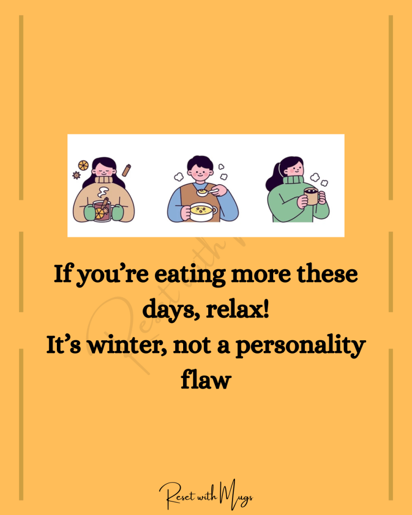 Your body is simply adapting — and occasionally being dramatic. So enjoy your warm meals, stay mindful, and remember: the goal isn’t to eat less, it’s to eat smart. And maybe, just maybe, don’t stock up on too much junk.